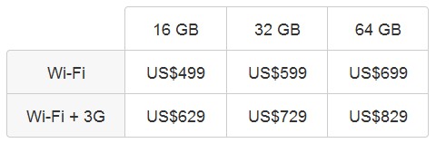 ▼iPad售價表: